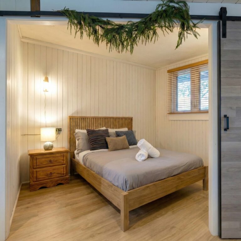 Our family enjoyed our short stay at this property. The location is about 15 minutes from the town of Bracebridge - East to grab food, etc.. The main house is very cute and the view (even in winter) is gorgeous! The kitchen had the essentials needed for cooking. The two washrooms are large and well equipped with towels/hand soap/toilet paper. The main bedroom has a gas burning fireplace and very comfortable king size bed. Be aware - there is no door but the room is away from the main living area and up 4 steps. The large couch in the living space can comfortably seat 5 people while watching TV or enjoying the gas burning fireplace. We enjoyed using the sauna (a great way to heat up in -20 cold weather) as well as skating around on the rink area. The third bedroom (double bunk beds) is in the bunkie